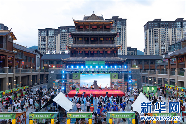 新华网贵阳8月12日电 近日,贵州省铜仁市江口县梵净小城皇经街内,由贵州铜仁贵茶茶业股份有限公司主办的“抹茶雅集”开市。市集现场商贾云集,来自各地的游客络绎不绝,呈现出一派热闹景象。