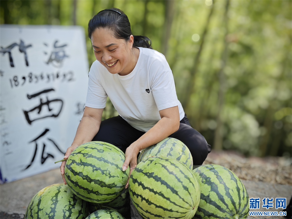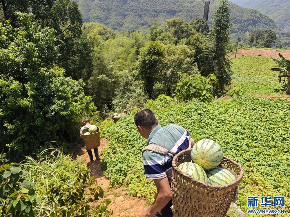8月13日,在贵州省赤水市葫市镇金沙村西瓜基地,西瓜订单不断,瓜农采收忙。新华网发(张浪摄)