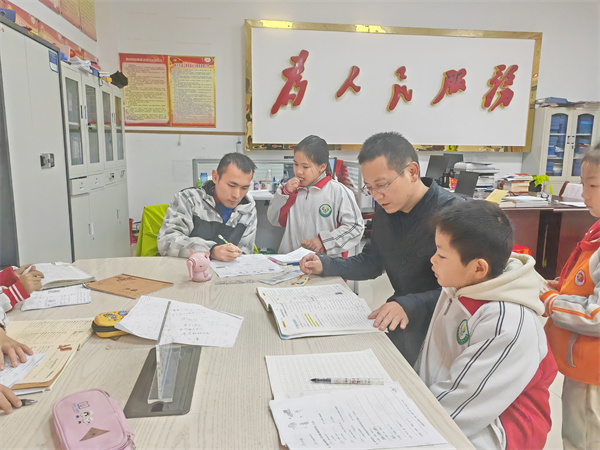 蒋本睿为社区留守儿童辅导作业