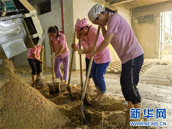 制曲车间工人忙着制曲。新华网发(仁怀市融媒体中心供图)