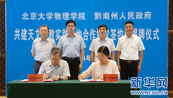 新华网贵阳8月23日电(周远钢)8月22日,北京大学物理学院、黔南州人民政府共建天文科教实践基地合作协议签约暨揭牌仪式在贵州省黔南布依族苗族自治州平塘县举行。双方将开启校地合作、共谋发展新篇章。
