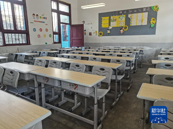 三塘镇中心学校新换的课桌椅。(刘丹 摄)