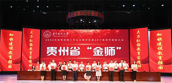 9月5日上午,贵州医科大学2024年秋季学期工作会议暨庆祝第40个教师节表彰大会在云漫湖校区隆重举行。会议全面总结学校2024年上半年工作,统筹安排部署下半年各项工作,表彰在教书育人各方面工作中取得突出成绩的先进集体和优秀个人。
