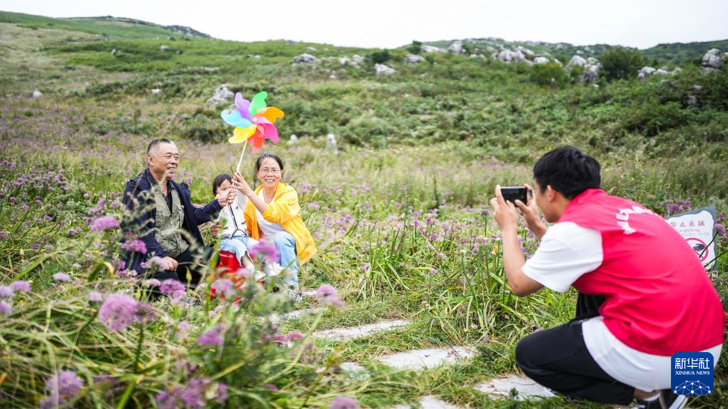 游客在韭菜坪景区内游玩、拍照(9月12日摄)。新华社记者 陶亮 摄pagebreak