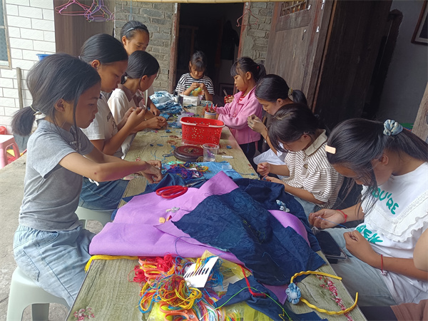 开阳县高寨乡平寨村学生在学习蜡染、刺绣的技艺。