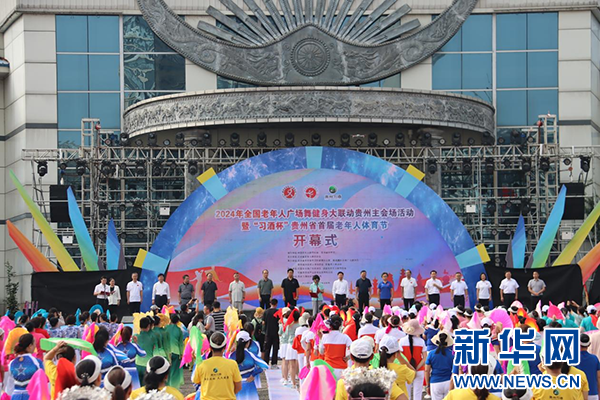 新华网贵阳9月15日电 9月14日,2024年全国老年人广场舞健身大联动贵州主会场活动暨“习酒杯”贵州省首届老年人体育节开幕式在黔东南州凯里市举行。