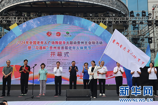 授“贵州省老年人体育节会旗”。新华网发(陈栋荷 摄)