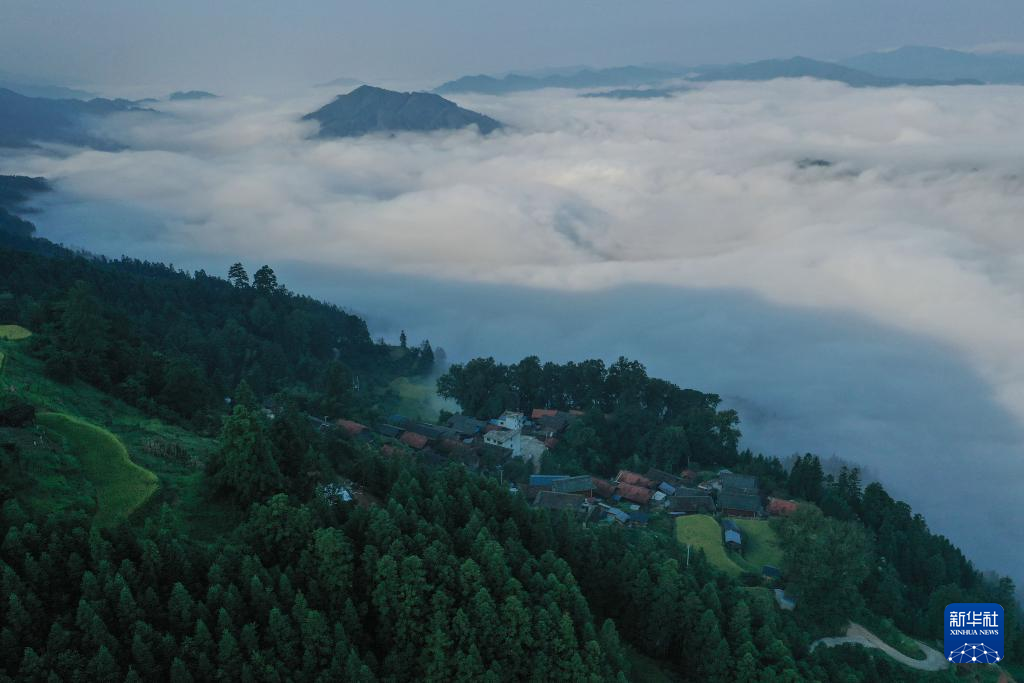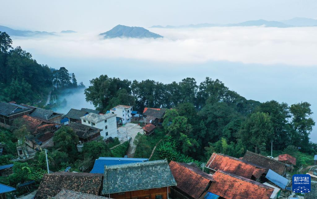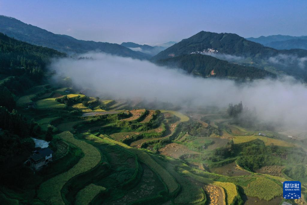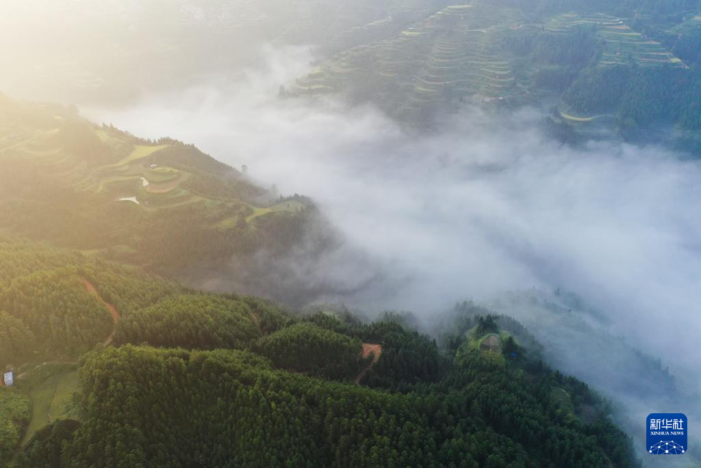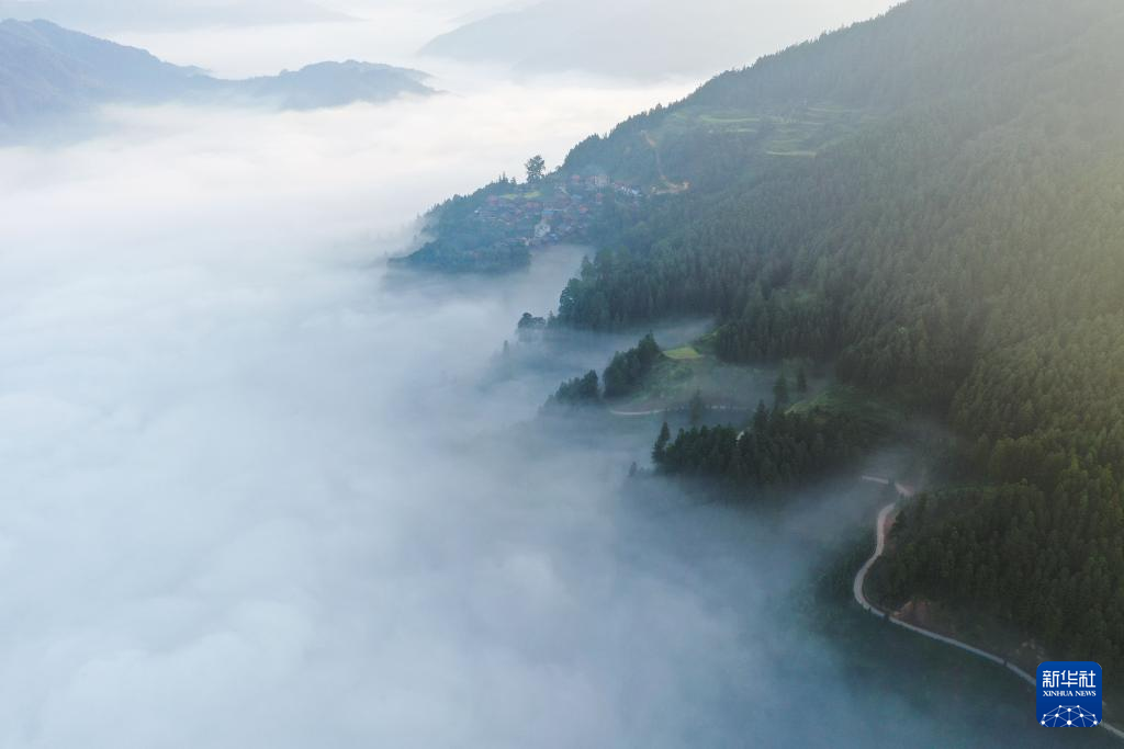 这是9月19日在贵州省黎平县尚重镇洋洞村拍摄的云海景观(无人机照片)。新华社记者 杨文斌 摄