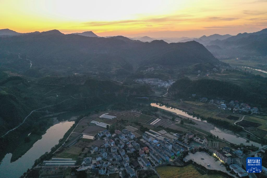 黄昏时刻的贵州省岑巩县注溪镇周坪村(9月25日摄,无人机照片)。新华社记者 杨文斌 摄pagebreak