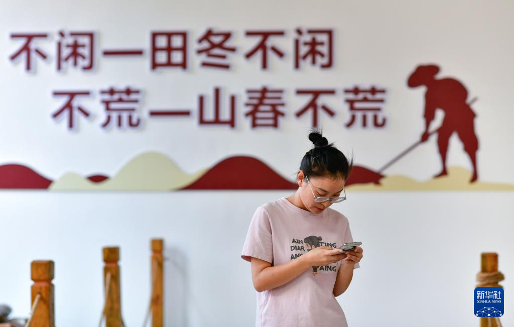 9月25日,侯佳媛在贵州省岑巩县杂交水稻种子研发检测中心回复村民信息。新华社记者 杨文斌 摄pagebreak
