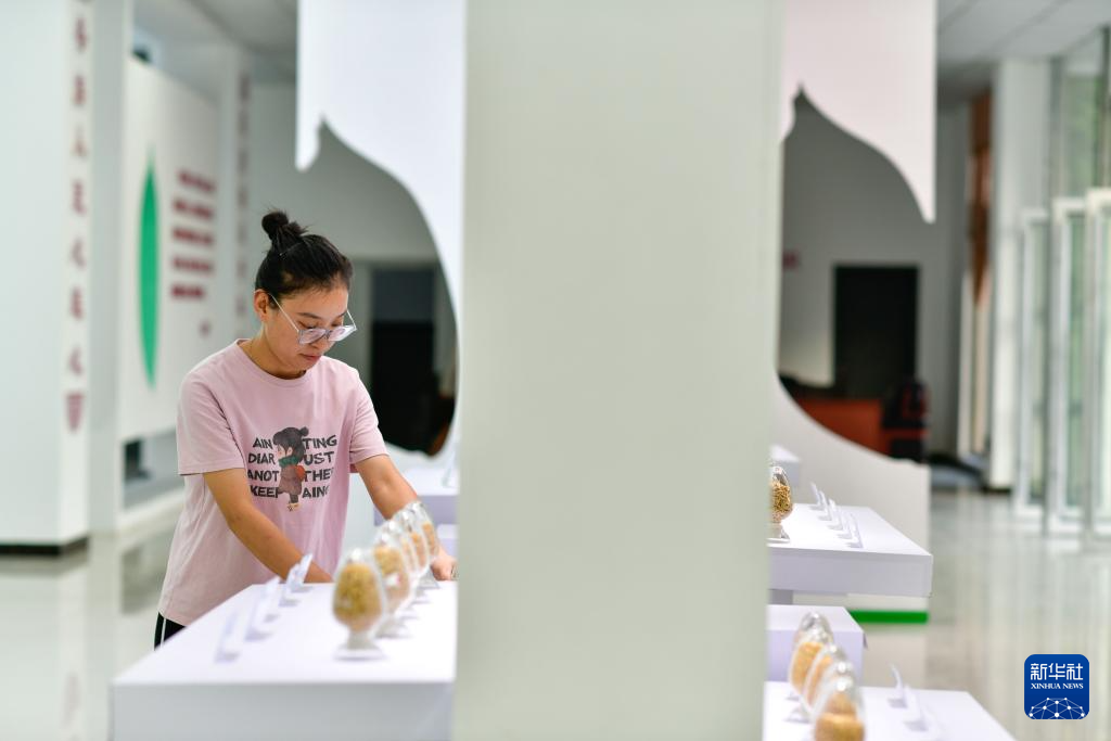 9月25日,侯佳媛在贵州省岑巩县杂交水稻种子研发检测中心检查种子存放情况。新华社记者 杨文斌 摄pagebreak