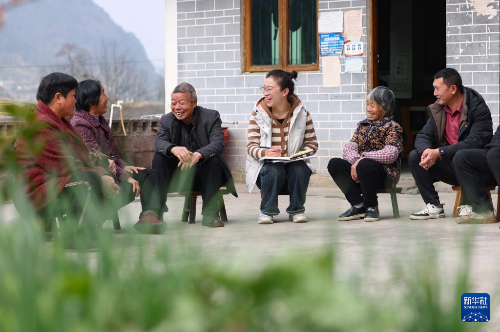 3月9日,在贵州省岑巩县注溪镇周坪村,侯佳媛(中)走访群众。新华社发(胡攀学摄)pagebreak