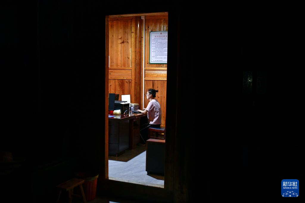 9月25日,侯佳媛在贵州省岑巩县注溪镇周坪村村委会办公室整理资料。新华社记者 杨文斌 摄pagebreak