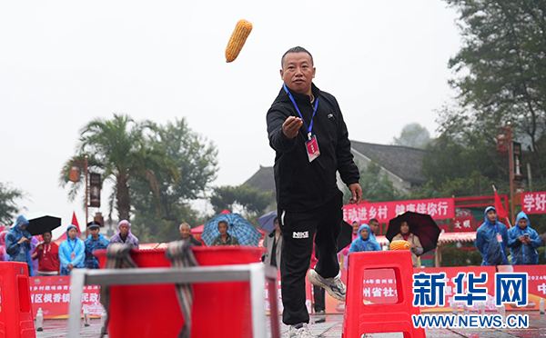 10月12日,选手在颗粒归仓比赛中。新华网 卢志佳 摄