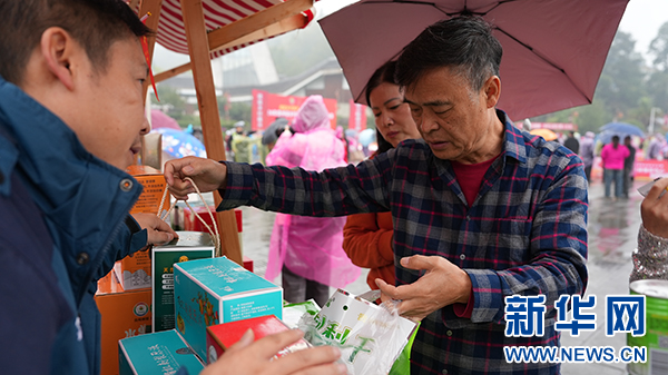 赛事设置的农副产品展销区汇集当地多种产品。新华网 卢志佳 摄