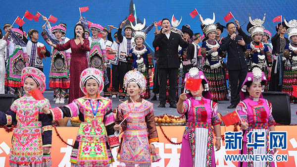 10月12日,开赛仪式现场的少数民族歌舞和地方戏剧表演。新华网 卢志佳 摄