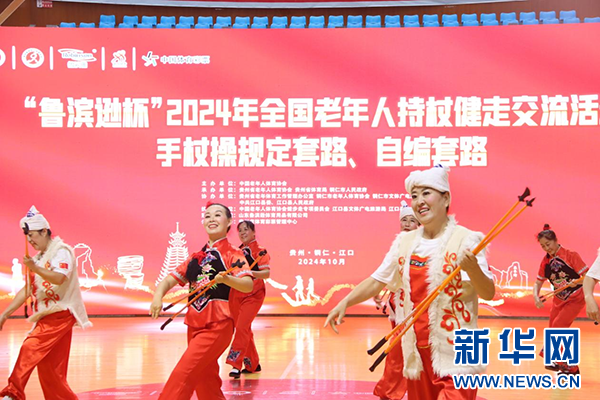 图为手杖操比赛现场。新华网发(黄芳薪 摄)