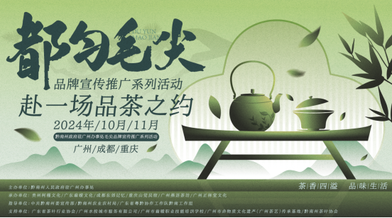 为将都匀毛尖醇厚的茶香与深厚的文化底蕴传递给更多的人,2024年黔南州驻广办都匀毛尖品牌宣传推广系列活动将于10月18日在广州盛大启幕。本次活动精心筹备了都匀毛尖品鉴会、分享会等,诚邀行业专家、知名茶企、资深评茶师、媒体精英、品牌负责人及众多潜在客户共襄盛举。