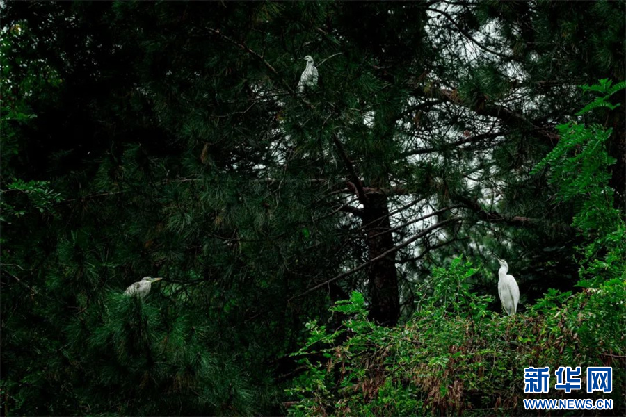 大量白鹭前来栖息觅食