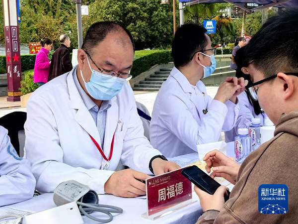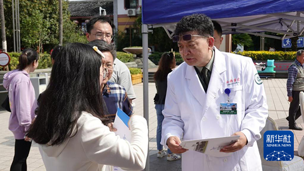 北京大学第一医院院长助理、肾内科副主任周福德10月17日在义诊现场。新华社记者 董瑞丰 摄
