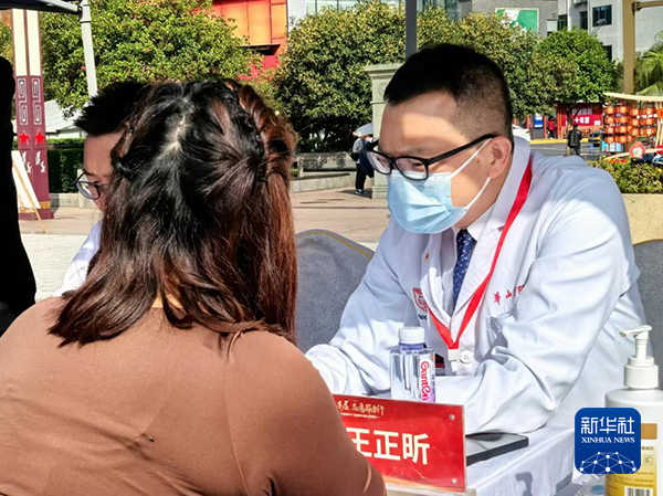 复旦大学附属华山医院普外科副主任王正昕10月17日在义诊现场。新华社记者 董瑞丰 摄
