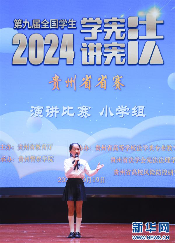 新华网贵阳10月21日电 为推动青少年法治教育的常态化与长效化,全面提升青少年法治素养,10月19日,第九届全国学生“学宪法 讲宪法”贵州省省赛在贵州警察学院举行。此次比赛共设置演讲比赛和法治素养竞赛两个赛项,来自全省九个市(州)的小学、初中、高中及高校的近200名选手参与。