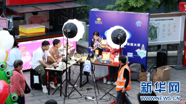 10月19日晚,贵州省黔西南州兴义市大佛坊景区内,“寻找新农人”暨“黔货出山我代言”2024年全国高校乡村振兴网络技能大赛决赛正式开赛,来自全国多个高校的35支决赛队伍分散在景区各处,通过网络直播“花式”带货,为黔西南州27个乡村振兴暨东西部协作农特产品代言,热闹的气氛也引来众多游客驻足围观。