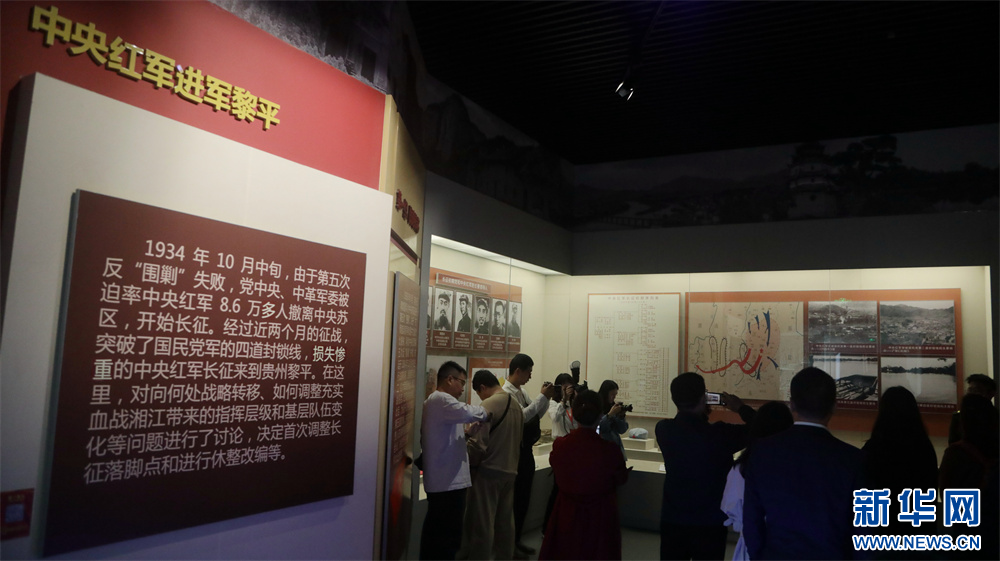 媒体采访团在黎平会议纪念馆参观(10月17日摄)。新华网 周远钢 摄pagebreak