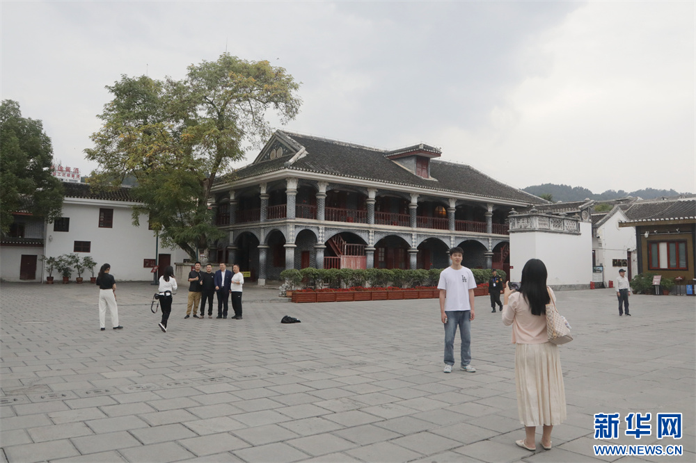 媒体采访团在习水县土城镇四渡赤水纪念馆参观(10月19日摄)。新华网 周远钢 摄