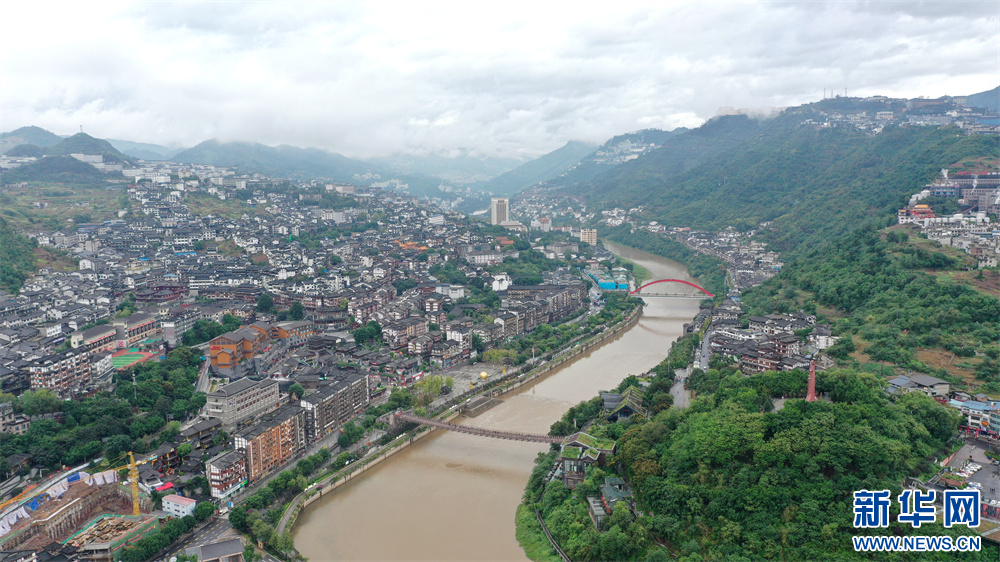 10月19日航拍的贵州仁怀市茅台镇赤水河一景。新华网 周远钢 摄pagebreak