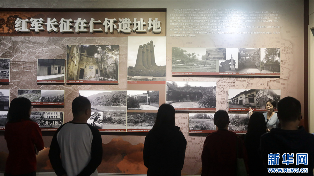 媒体采访团在仁怀市茅台镇“红军长征过茅台陈列馆”参观(10月19日摄)。新华网 周远钢 摄pagebreak