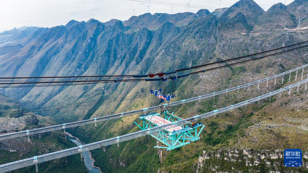 新华社贵阳11月4日电(记者向定杰)4日下午,在建世界最高桥——贵州花江峡谷大桥建设取得重要进展:随着缆索吊机将重约215吨的首件钢桁梁精准吊装至指定位置,大桥施工进入新阶段,为明年通车运营奠定了基础。