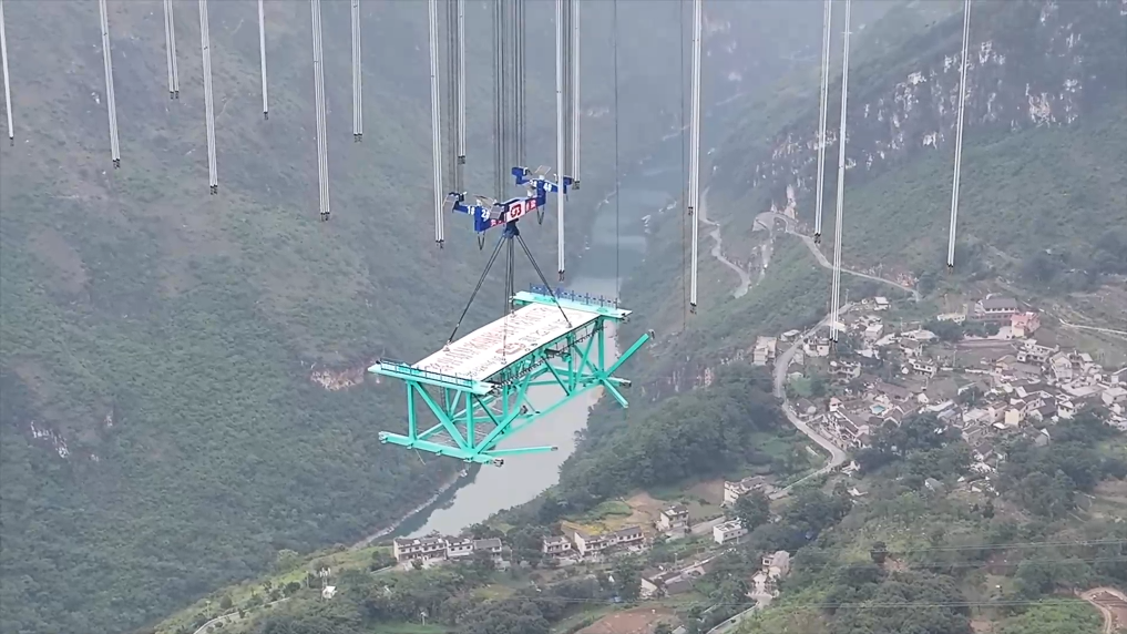 4日下午,在建世界最高桥——贵州花江峡谷大桥建设取得重要进展:随着缆索吊机将重约215吨的首件钢桁梁精准吊装至指定位置,大桥施工进入新阶段,为明年通车运营奠定了基础。