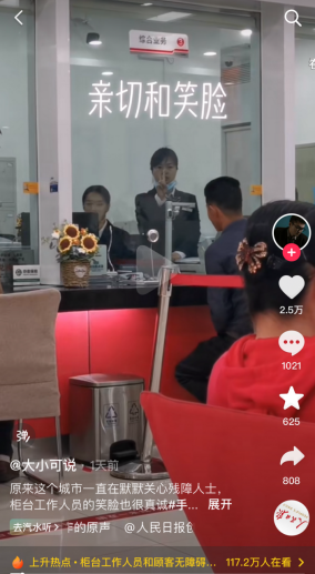 11月7日,徐雪在接受采访时回忆说:“当时看到一位客户在用手比划什么,心想这应该是一位听障人士,就立马过去用手语询问他要办理什么业务,顺利地帮助他把业务办理好。”“客户走的时候对我们笑了一下,当时觉得心里特别温暖,能帮助到他也觉得非常开心。”
