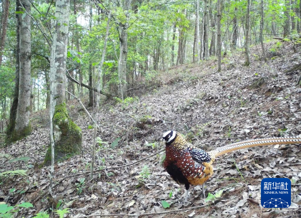 图为在贵州麻阳河国家级自然保护区,红外相机拍摄到的国家一级重点保护野生动物白冠长尾雉。(贵州省林业局供图)