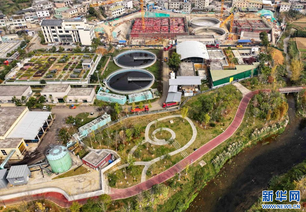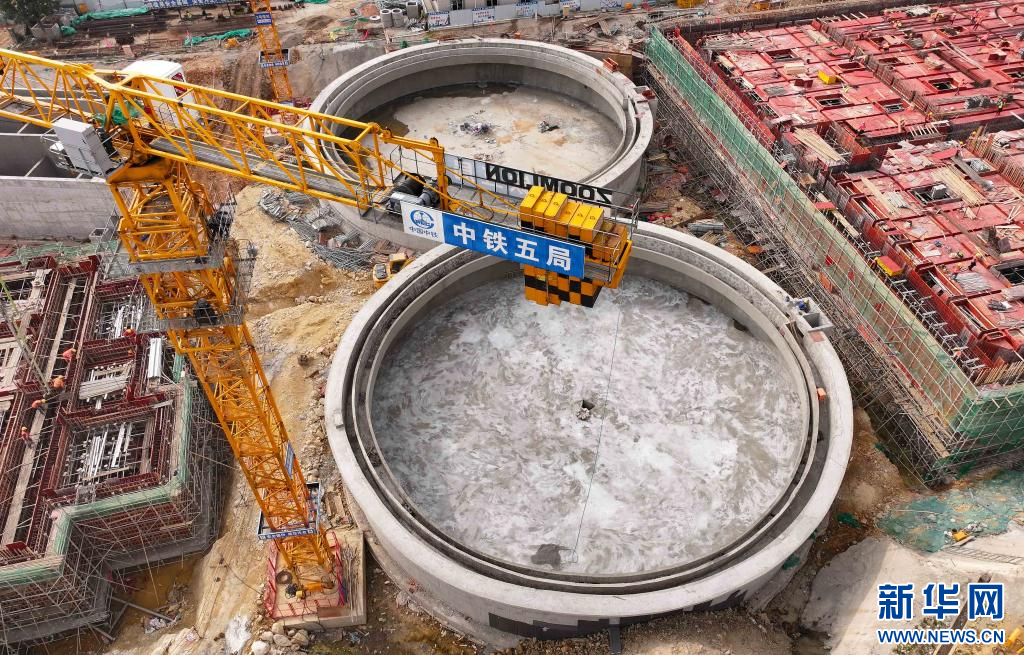 二次沉淀池正在紧张施工中(无人机照片,11月16日摄)。新华网发(陈洁 摄)