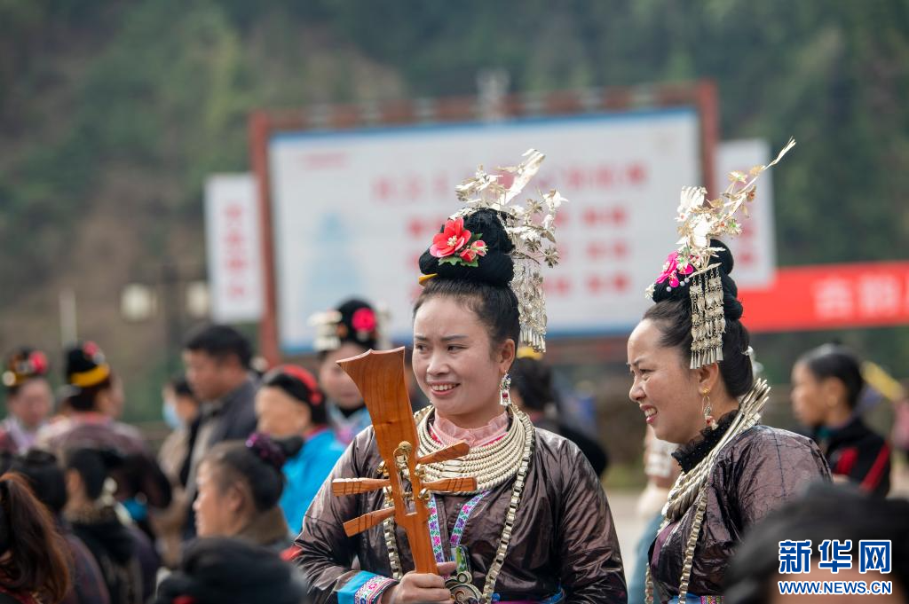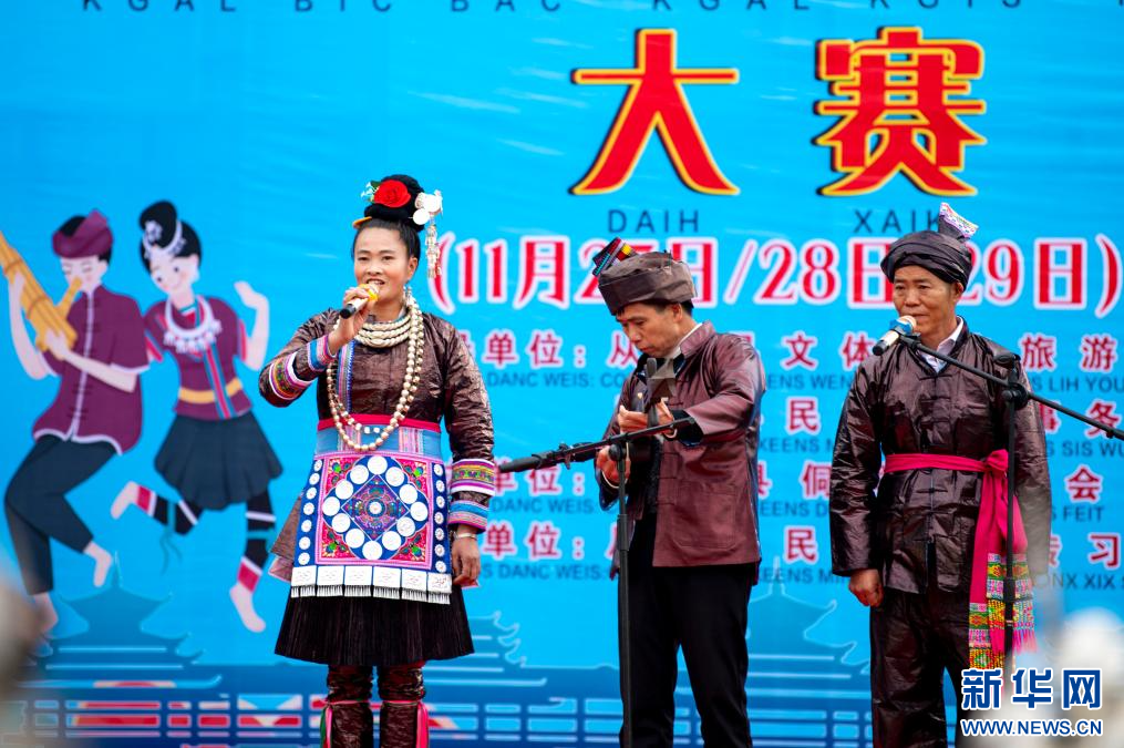 11月27日,在贵州省从江县北上鼓楼广场,一支侗族琵琶歌队在参加比赛。新华网发(吴德军 摄)pagebreak
