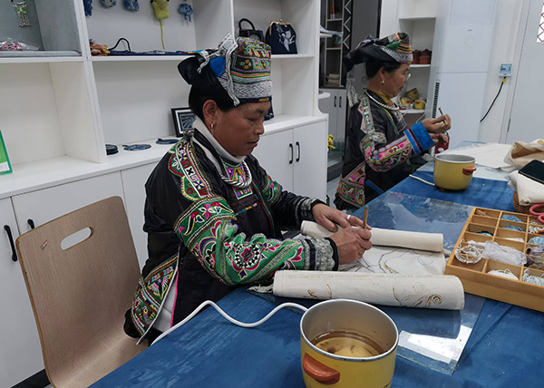 图为“黔东南绣娘”劳务品牌绣娘创作场景。(袁仁雄 摄)