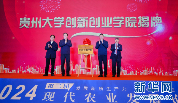 新华网贵阳12月25日电(黄勇)12月23日,在贵阳举行的贵州大学作为主办方之一的第三届全国农业发展论坛上,贵州大学创新创业学院举行揭牌仪式,同时为贵州大学所获中国国际大学生创新大赛(2024)和第十四届“挑战杯”中国大学生创业计划竞赛国赛金奖颁奖。