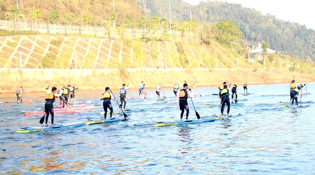大型水上巡游、动力冲浪板表演、摩托艇水上飞人表演、静水划艇表演;水上全民健身活动体验、皮划艇,桨板,背包船体验。