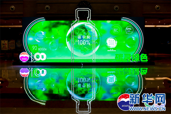 显示大会100%的碳中和信息的绿色大屏。