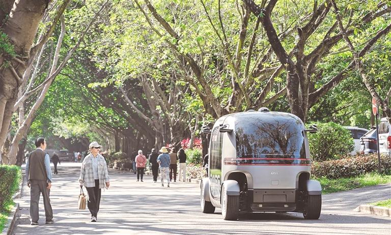 行驶在莲花山公园的Robobus。