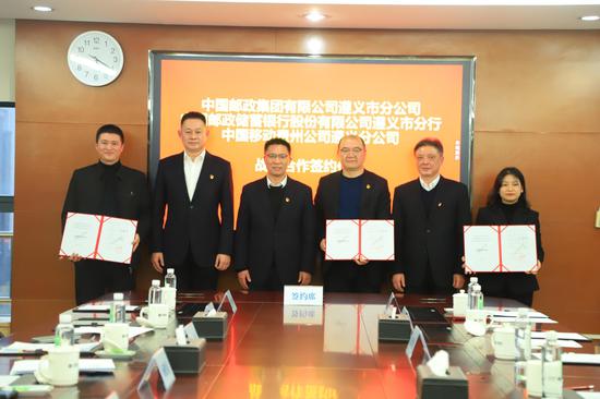 此次签约,是基于三方在长期发展过程中对彼此优势的高度认可,更是顺应市场发展潮流的必然选择。将持续聚焦重点,提升对接效率。结合遵义移动需求,遵义市邮政金融将充分发挥点多面广、覆盖城乡、贴近百姓、专业高效等优势,不断创新服务举措,细化服务方案,加强沟通对接,确保金融需求及时响应、第一时间落实;靶向施策,强化专业服务。遵义移动凭借自身在通信和信息化领域的专业能力,助力遵义邮政金融实现数智化转型升级,提升客户服务体验。遵义邮政金融不断通过“技术融合、数据融合、渠道融合”,提供结算与资金管理、信贷支持、个人金融服务等覆盖上下游、全链条的一站式、一揽子金融服务;强化保障,发挥协同效应。共同在至诚服务中实现合作共赢、互助互济,遵义邮政金融将持续在结算流程上加快优化、在授信融资上加大力度,在综合服务上加强提升。