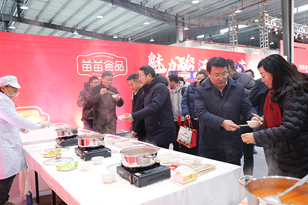 1月9日,“魅力酸汤 味在苗乡”科技支撑苗家酸汤产业振兴发展大会暨锅圈乡村振兴研究院产业项目启动仪式在“村BA”发源地——贵州省台江县台盘村农产品加工产业园举行。