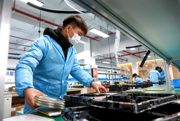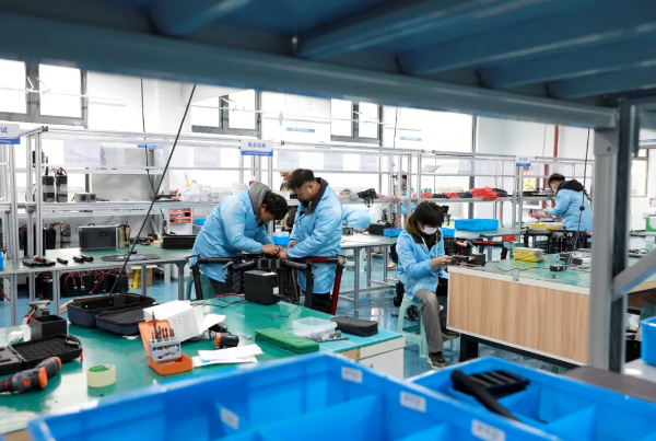 无人机组装车间里,工作人员紧张有序地忙碌。