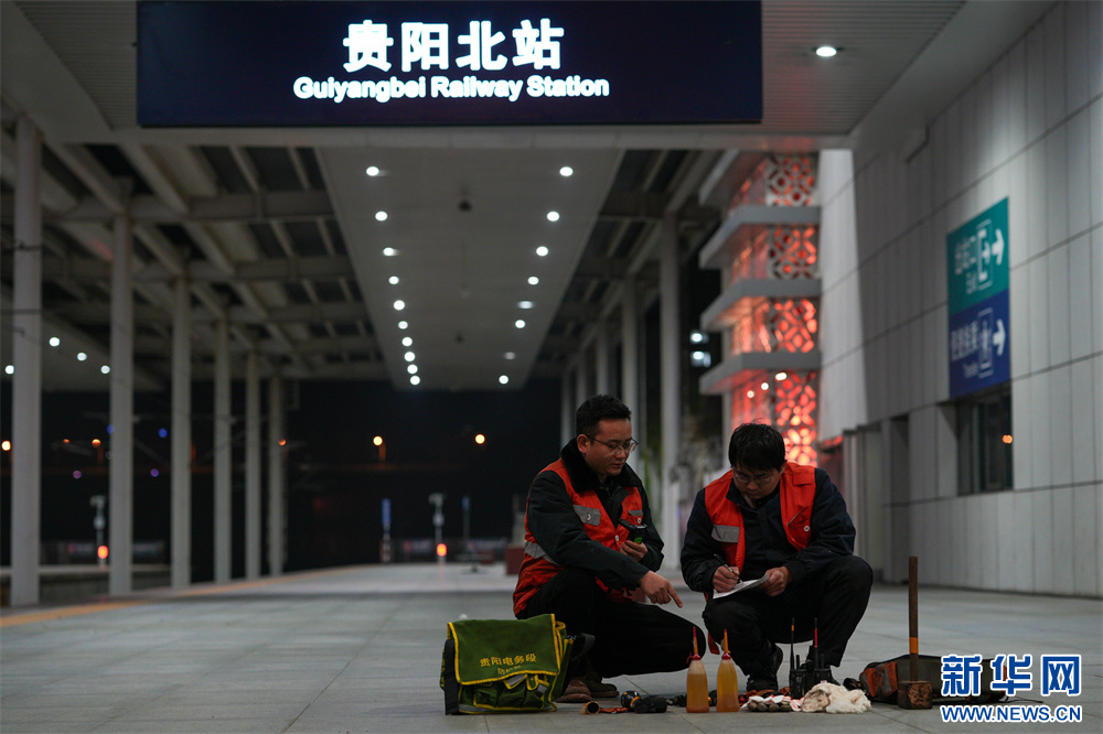 当日,是2025年春运首日,中国铁路成都局集团有限公司贵阳电务段的职工们利用凌晨“天窗”时间,在贵阳北站,顶着寒潮,加强铁路信号关键部件、设施检查保养,提高设备运行质量,全力保障春运安全畅通。