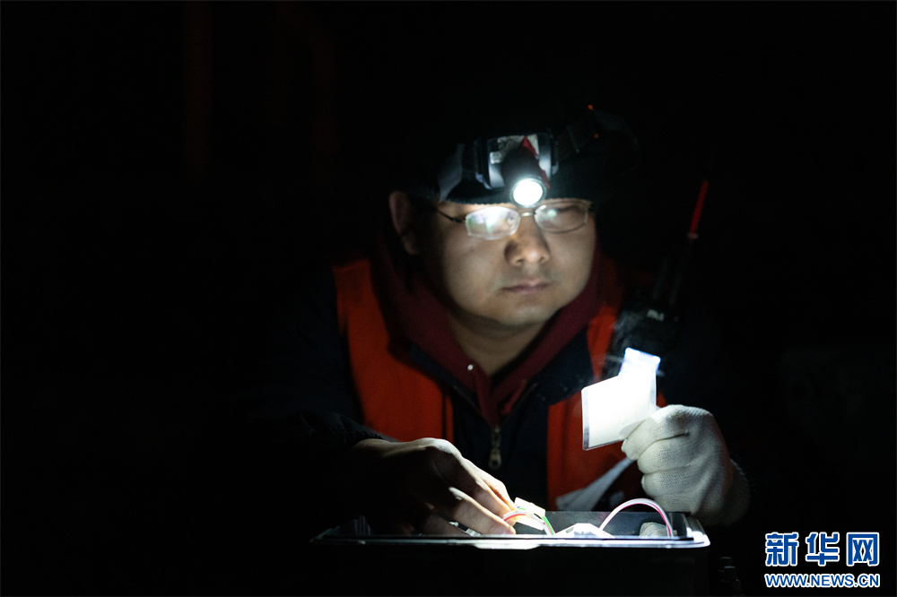 1月14日,中国铁路成都局集团有限公司贵阳电务段职工,对轨道电路箱盒配线进行检查。新华网发(杨隆亚 摄)
