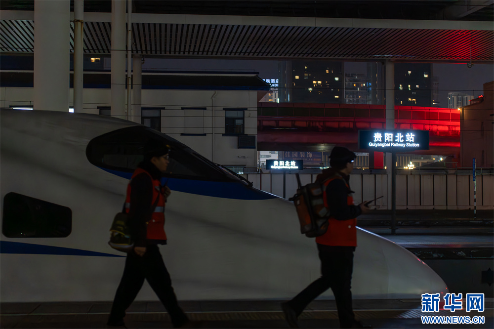 1月14日,中国铁路成都局集团有限公司贵阳电务段职工行走在站台上。新华网发(杨隆亚 摄)