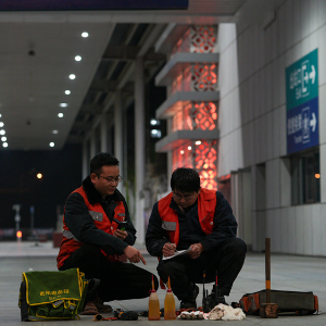 1月14日,中国铁路成都局集团有限公司贵阳电务段职工,在贵阳北站“天窗”开始前,清点工具材料。