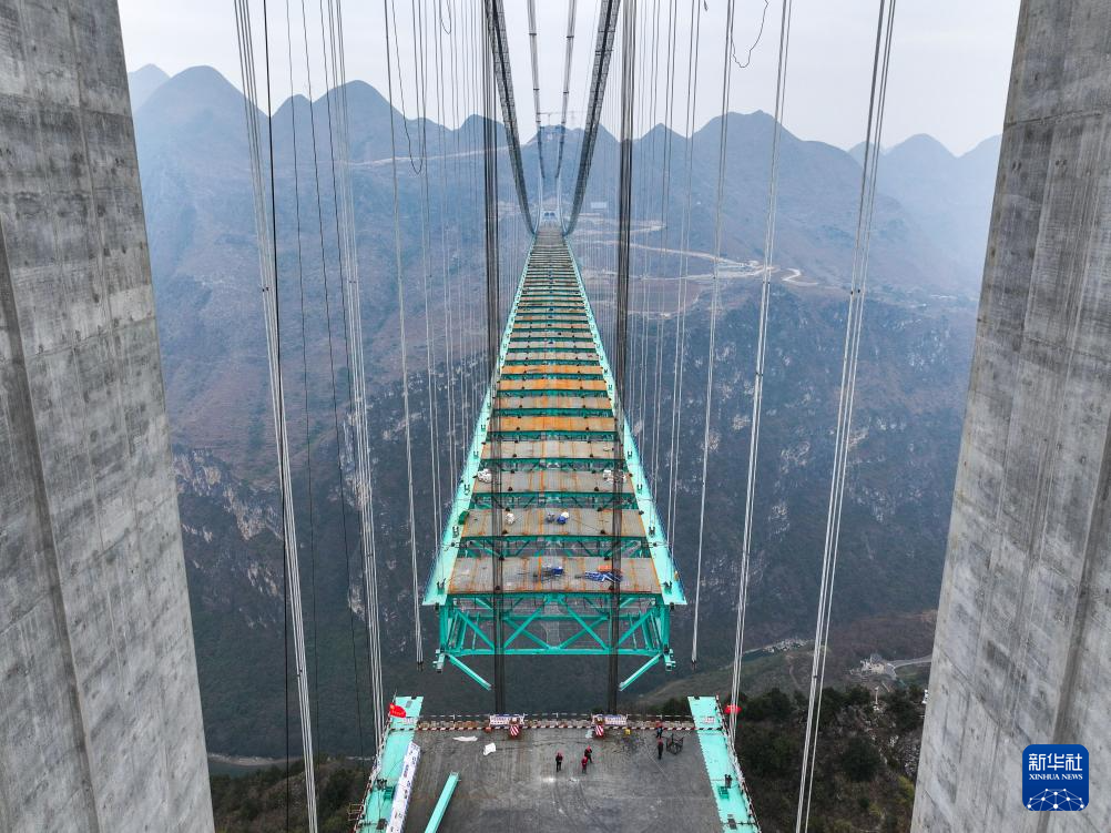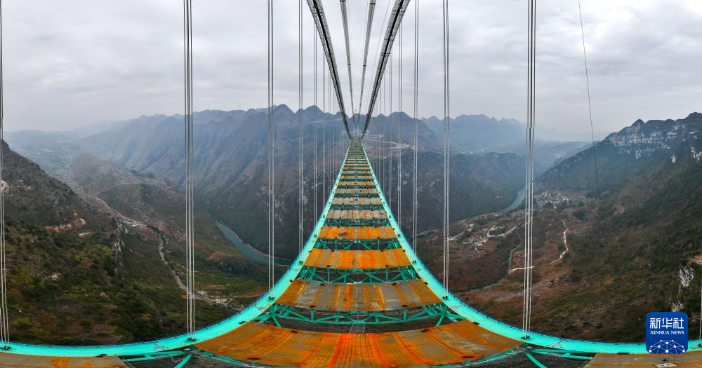花江峡谷大桥因跨越被誉为“地球裂缝”的花江大峡谷而得名,是贵州省六枝至安龙高速公路的关键控制性工程,自2022年开工建设,预计2025年建成。大桥为钢桁梁悬索桥,全长2890米,桥面距水面垂直高度达625米,建成后将成为新的世界第一高桥。